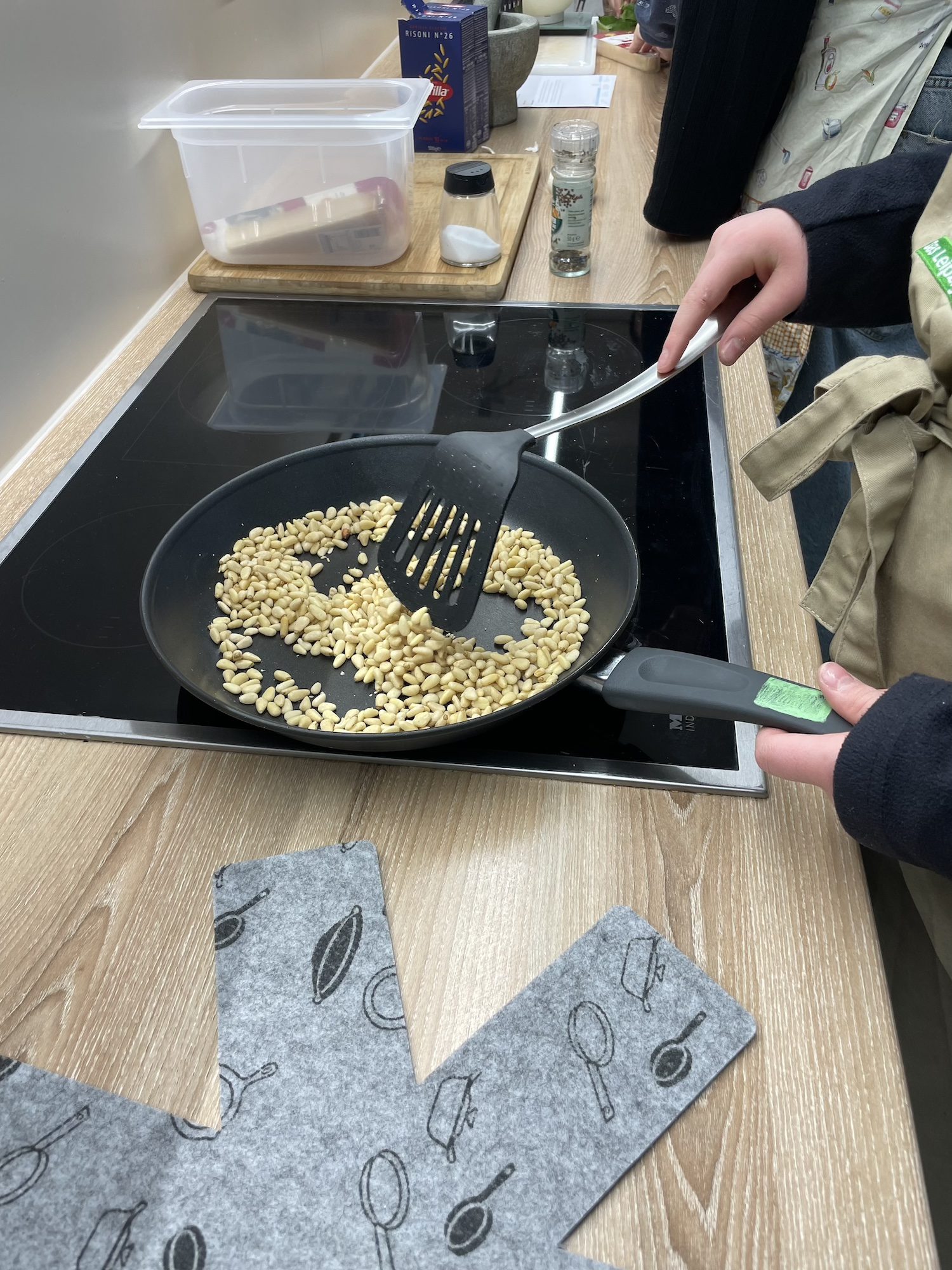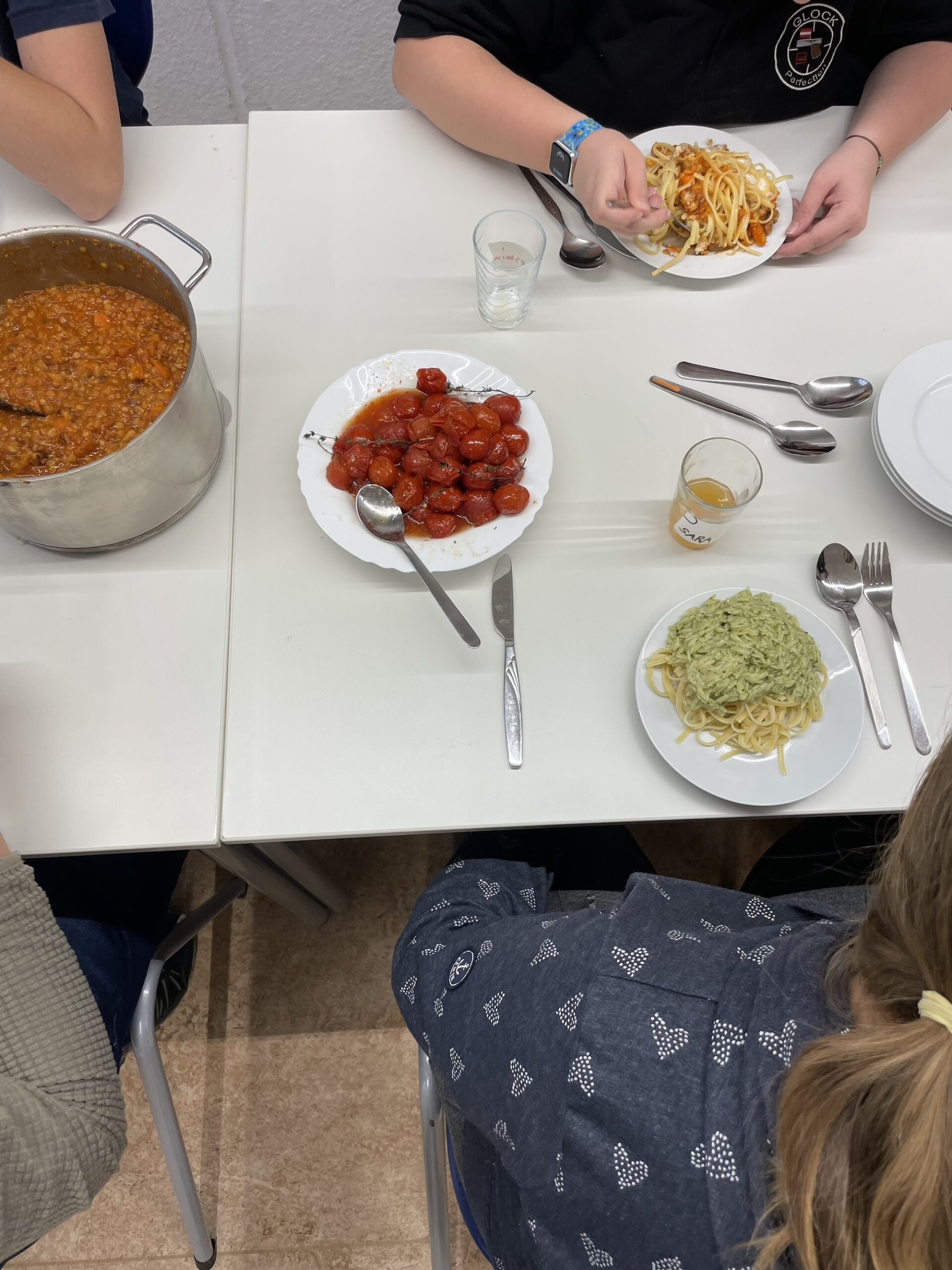 Im Modul „Pasta, Basta!“ bereiteten die Schülerinnen und Schüler drei unterschiedliche Nudelgerichte zu: Pesto Genovese, Bolognese mit großem Linsenanteil und wenig Fleisch sowie Nudeln mit Lachs-Sahne-Soße und Spinat. Dabei lernten sie verschiedene Nudelsorten und deren Besonderheiten kennen, erfuhren mehr über Unterschiede in der Nudelproduktion und konnten aktiv beim Kochen mitwirken. So wurden neue Geschmäcker entdeckt, Teamarbeit gestärkt und Inklusion auf genussvolle Weise erlebbar gemacht.